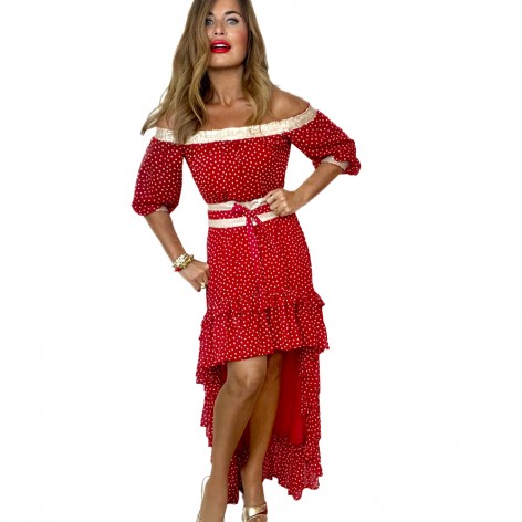 Carro Eliminar de lista Lista de deseos Quick view VESTIDO RELISH Precio 45,00 € Vestido asimétrico lunares. PL 95% EA 5%