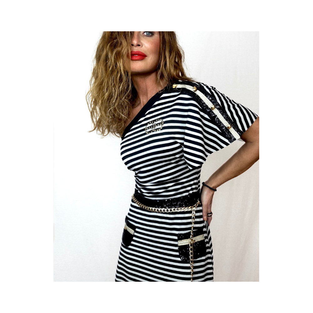 CUERPO ASIMETRICO RAYAS CON BOTONADURA DORADA, 95%PL, 5% EA