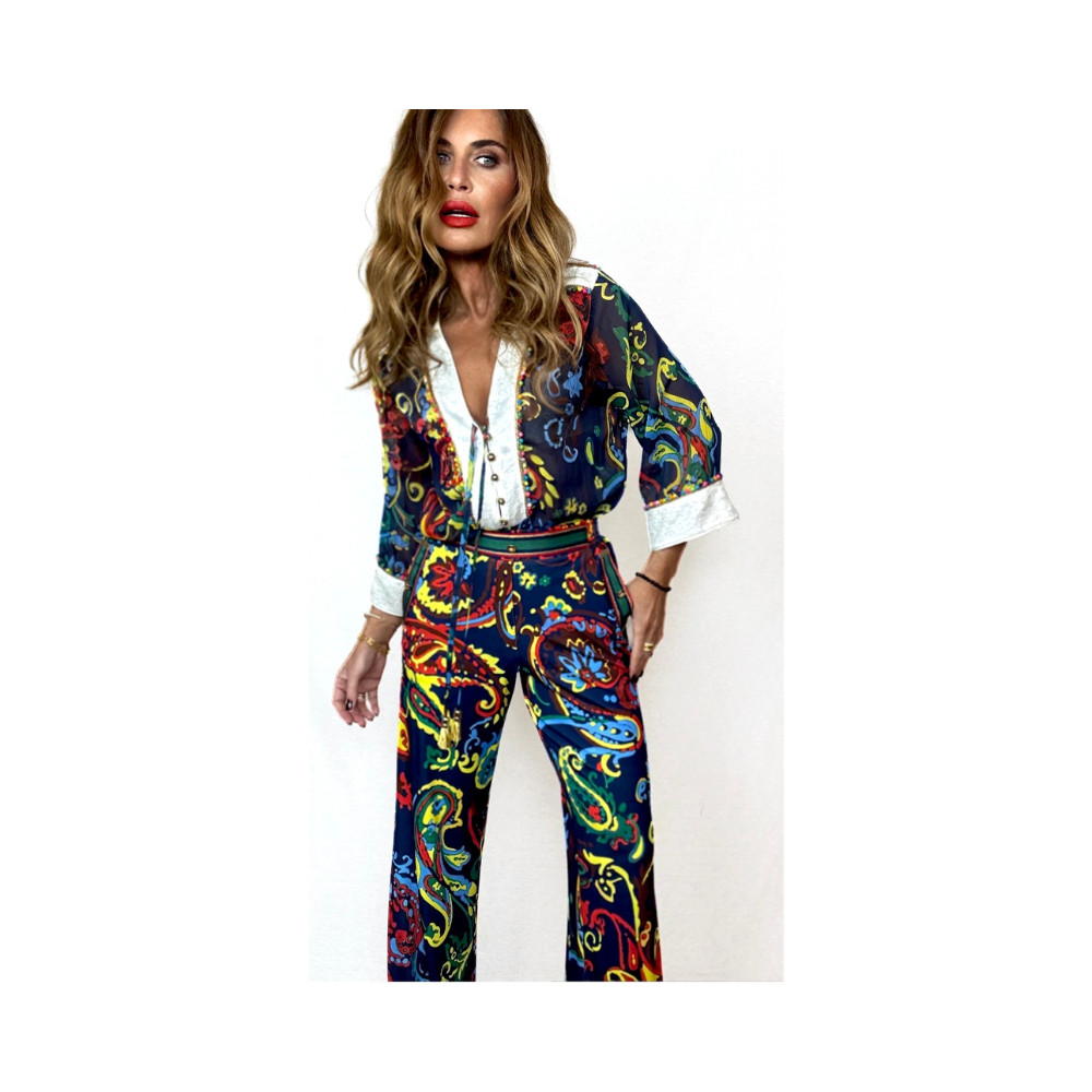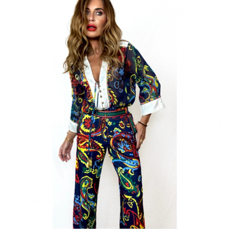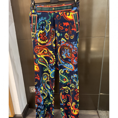 PANTALON RECTO CON CINTURA GOMA , FRANJA LATERAL LENTEJUELAS, 95% PL, 5% EA