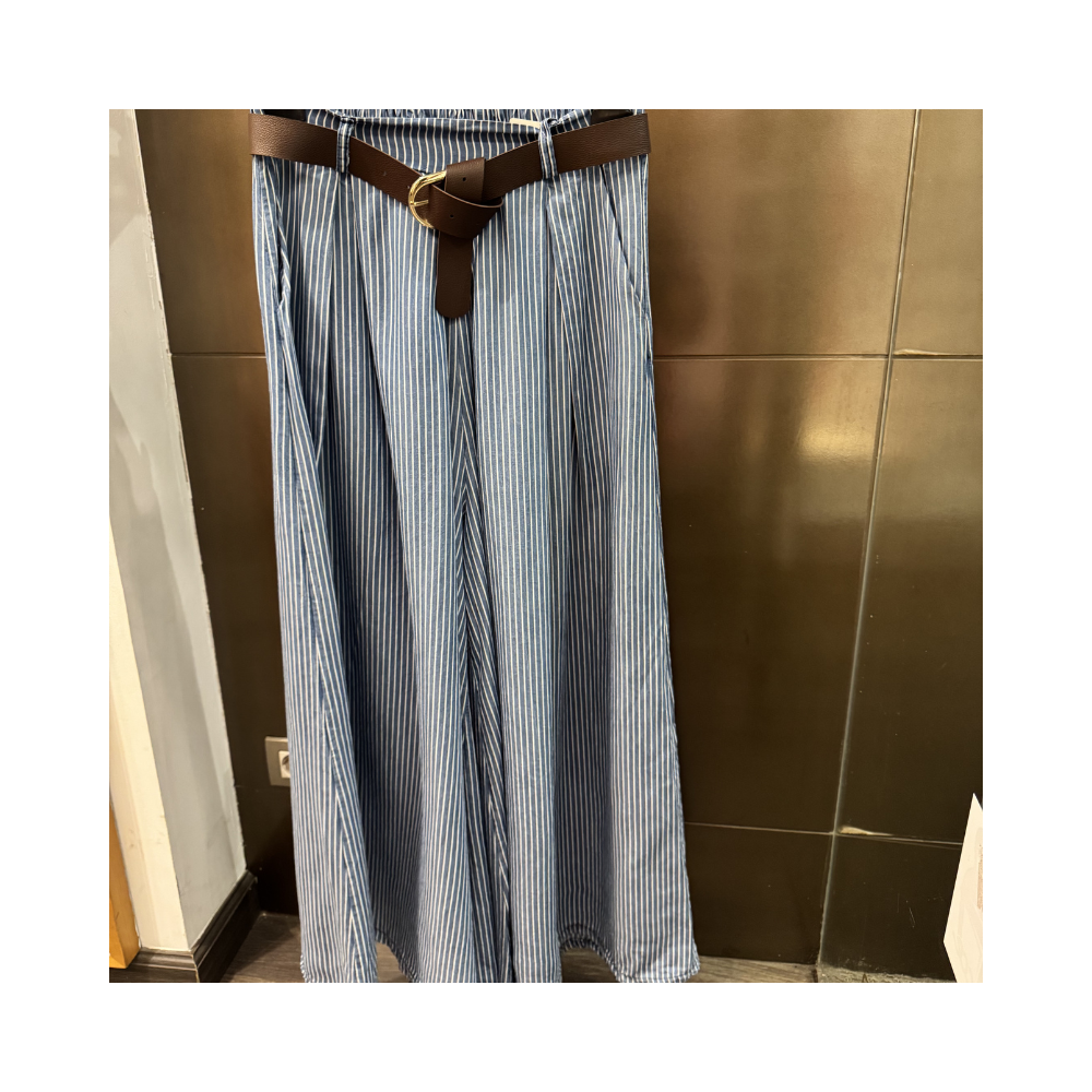 PANTALON ANCHO RAYAS CON GOMA EN CINTURA, INCLUYE CINTURON, T/U (ABARCA DE 36 A 46) 100% LYOCELL